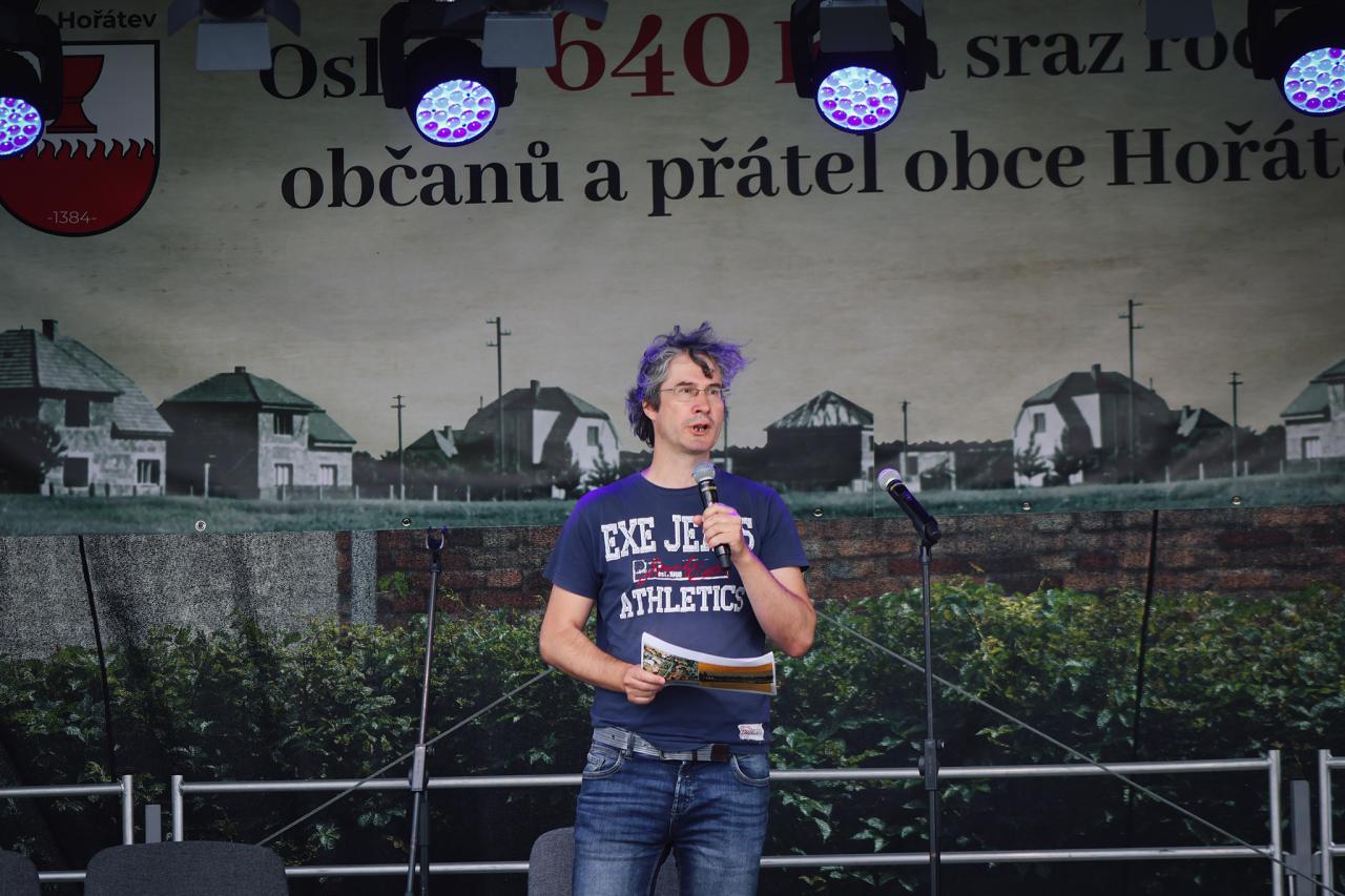 Následně si vzal slovo pan Pavel Fojtík, který nás v hodinové přednášce lehce seznámil s historií obce Hořátev. V tu dobu bylo přítomno neuvěřitelných 400 rodáků, občanů či přátel naší obce.