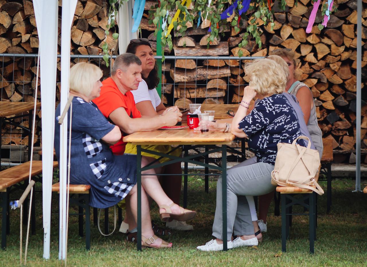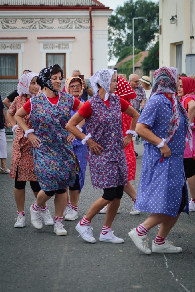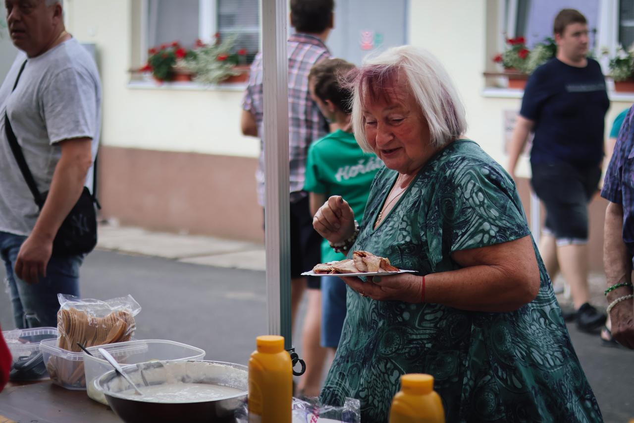 Grilované selátko a krocan, bůček a klobásky z udírny, koláčky od místního spolku PEČE CELÁ HOŘÁTEV, aperol, pivo, limo a víno z místního vinařství Krejčík a Novák. To všechno jste mohli ochutnat během sobotních oslav.